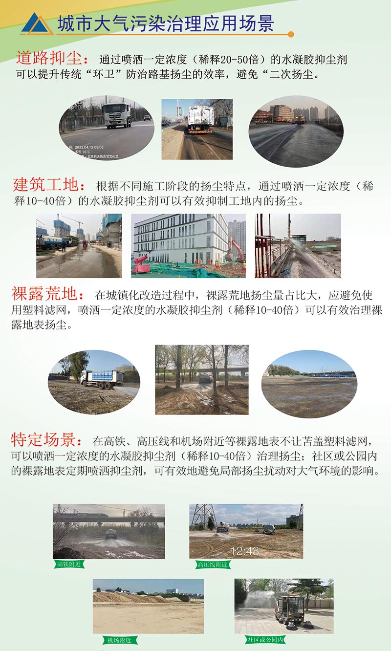 關于繼安 企業簡介: 繼安科技是由專家教授發起設立的專業技術公司(含繼安生態公司和湖北繼安生態環境科技有限公司等企業),是致力于科技創新、環保無公害、生物可降解抑塵降霾治理新思路的技術研發、銷售、產品服務于廣大客戶。 建立前期治理,中期維護,后期恢復大氣環境治理體系。 環保型水凝膠抑塵劑是可用于環保產業鏈環節中的大氣顆粒物污染治理領域, 產品所采用...